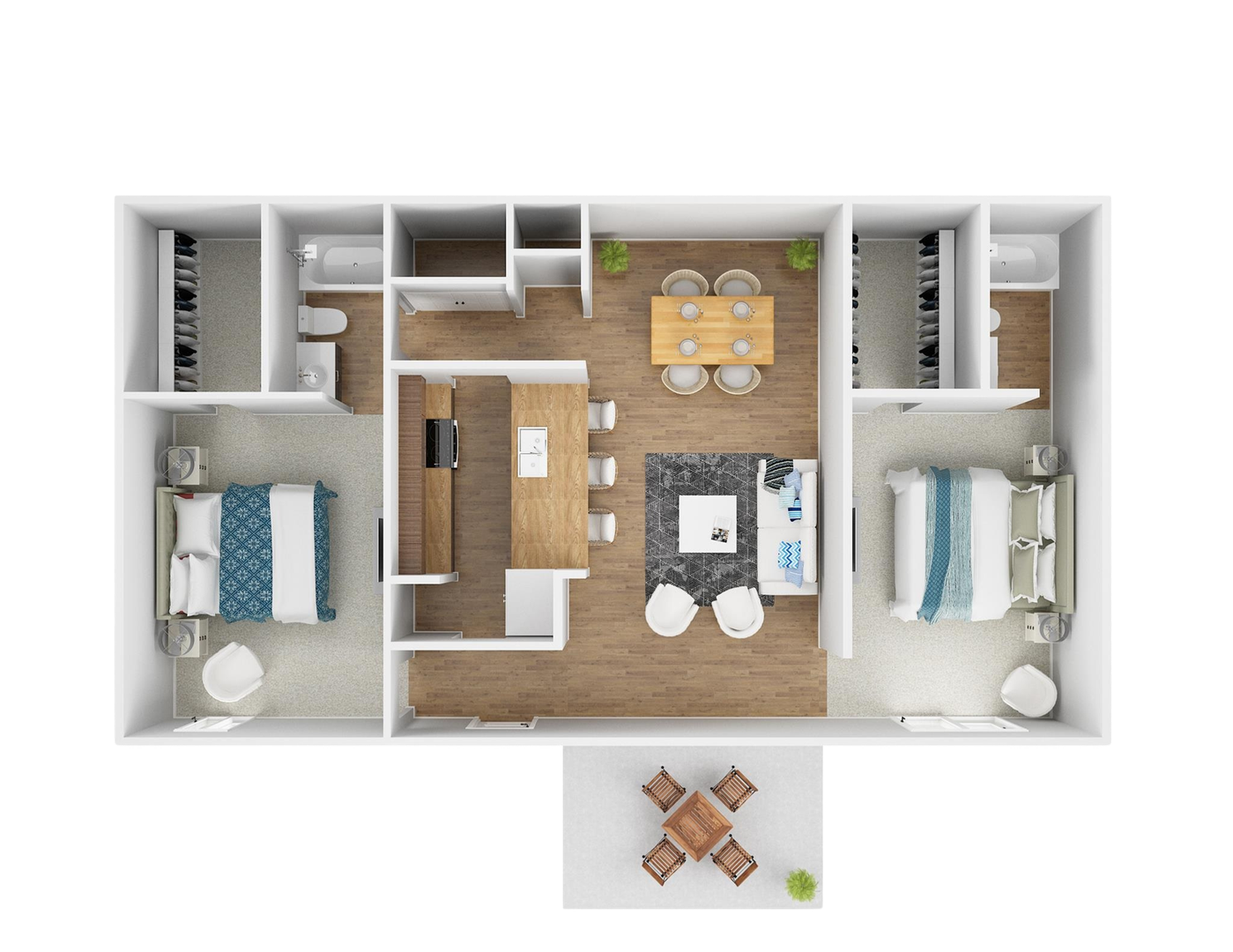 Discover a bright and open 968 sq. ft. floorplan featuring modern amenities and exceptional convenience: